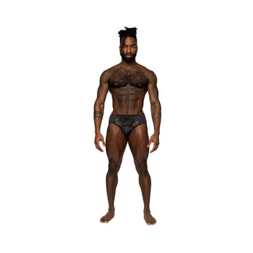 Male Power Sassy Lace Bikini Solid Pouch Black Xl