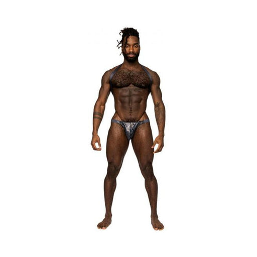 Male Power S'naked Shoulder Sling Harness Thong One-piece Black/blue L/xl