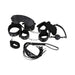 From the PU leather accessories collection, this style features a 7 Pack Lite Bondage Set and includes an adjustable faux fur lined Collar with Leash, Cat o' Nine Tails Whip, Soft Stretch 15' Rope, Adjustable faux fur lined Wrist Cuffs, Lightly lined Eye Shades with elastane head band, Adjustable Faux Fur lined Ankle Cuffs, Adjustable buckled Gag Ball. Metal Belt Buckles, Rings and Studs adorn most styles.