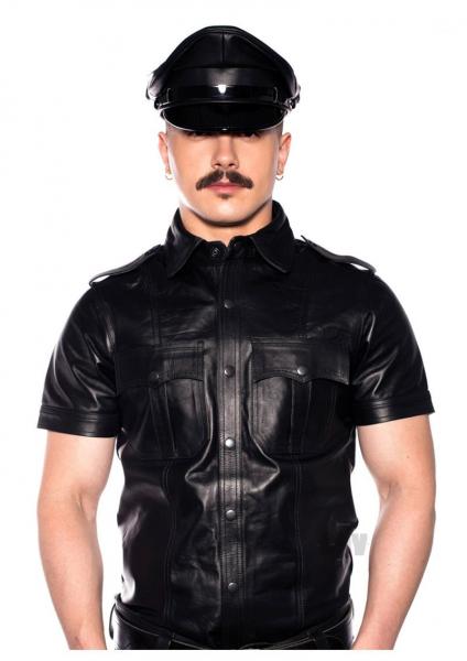 Out of stockThe Prowler Red range leather police shirt is a sharply tailored garment, made from quality leather. Black with grey piping details. Features: - C...