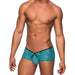 This is the perfect playful trunk to add to your underwear drawer. Our Tranquil Abyss Micro Mini Short stands out because of the zebra print effect created from the black mesh infused into the soft and stretchy polyester blend. The sexy ultra-low V-cut waist, high-cut legs and enhancing pouch complements your body. Allow yourself to embrace your sexy by wearing this vibrant trunk.