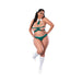 From the Exposed by Magic Silk collection, this style includes: a cupless bra with swan hook closure at the neck and back, a tie collar with swan hook closure, and a matching plaid panty with a split crotch cutout.