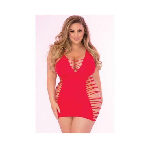 Pink Lipstick Seamless Halter Net Dress Red 1X/2X