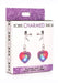 Add some flair to your pair with these silicone heart light up purple charm nipple clamps. Light show cycles through red, green and blue lights. Great for nighttime play or when giving a sexy strip tease. Adjustable clamps with vinyl coated tips for a comfortable wear. Gently pop out the LED base from the silicone pocket and remove plastic tab before use. Press the center of the LED base to cycle through 3 light patterns and power off. Replacement Charmed LED light discs sold separately.