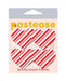 Petites: Two-Pair Small Candy Cane Hearts Nipple Pasties by Pastease® are hand-made in the USA of soft form-fitting glittery material that forms seamlessly to curves and resists wrinkling over hardening nipples. Just peel-and-stick on clean, dry skin. All Pastease® feature latex-free, medical-grade, waterproof adhesive that stay securely in place for as long as you like and until they are gently removed. Conceal or Reveal with Pastease® nipple pasties when worn with a sexy outfit, daring bikini, sheer top, revealing dress, Hefty bag, body lotion, crazy costume, party theme or nothing at all! Dimensions: 1.9 x 1.6 inches. Coverage Diameter: 1 inch.
