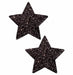 Pastease Sparkle Black Stars Pasties. Rockstar: Sparkle Black Star Nipple Pasties by Pastease. Rockstar Sparkle Black Star Nipple Pasties by Pastease are hand made in the USA of soft sparkly Eco-Fi felt material that forms to curves and resists wrinkling over hardening nipples.Just peel and stick on clean, dry skin. All Pastease feature latex free, medical grade, waterproof adhesive that stay securely in place for as long as you like and until they are gently removed.Conceal or reveal with Pastease nipple pasties when worn with a sexy outfit, daring bikini, sheer top, revealing dress, Hefty bag, body lotion, crazy costume, party theme or nothing at all! Dimensions 3 inches wide by 3 inches tall. Coverage diameter 1.55 inches. Pastease are the fun maker that brings out your inner Tease! Video.