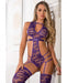 Sheer Lace Garter Bodysuit & Stockings Grape O/S