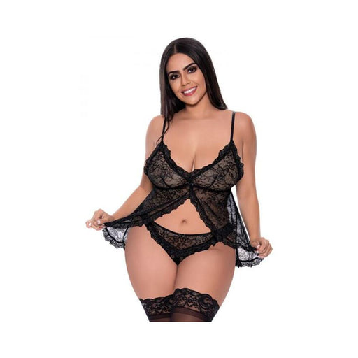 Magic Silk Ooh La Lace Babydoll & Split-crotch Panty Set Black L/xl