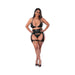 From the Exposed by Magic Silk collection, this style includes: a halter style bra with tie closure in the back, a matching stirrup cincher with zipper closure in the front and tie closure at the thighs, and a matching micro panty.
