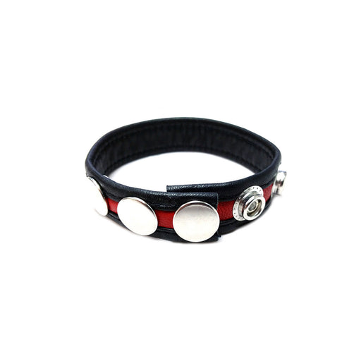 In stockSoft leather cock strap with three snap buttons for adjustable sizing. Measures 5.9 in. by 0.79 in.