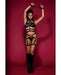 Bra, Garter Belt and Restraints Black O/S from Dreamgirl International Lingerie. Strappy Elastic Bralette Garterbelt and Wrist Restraint Set with Adjustable High Neck Closure. Strappy elastic bralette, garter belt and restraint set featuring: garter belt, restraint set. Adjustable high neck closure. Adjustable shoulder straps. Faux leather retro cone shaped cups. Adjustable back hook closure. Adjustable waist band from metal O-ring details. Faux leather wrist restraint. Please note the G-String Panty is not included. Categories: Lingerie, Clothing, Naughty Role Play, Stockings, Pantyhose, Garters. Restricted, Amazon Restricted. 2022.