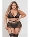 Galloon Lace Bra, Garter Skirt & G-string Black Qn