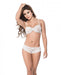 Lace he'll want to embrace! Whether you keep it hidden from sight or let it all show, this Panty and Top Lace Set will have you looking and feeling feminine. The set includes a slip-on sheer bra top with spaghetti straps and ruched hipster panties cut high through the rear. Material: 88% Nylon/ 12% Spandex. Hand Wash. Do not Bleach. Do not Iron. Small - Bust 34-36 inches. Waist 25-27 inches. Hips 35-37 inches.