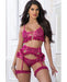 Lace Up Top, W/matching Cheekini, Garterbelt & Leg Garters Berry Sorbet O/s