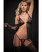 Open Front Clasp Babydoll, Crotchless Garter Thong & Stockings Black O/s