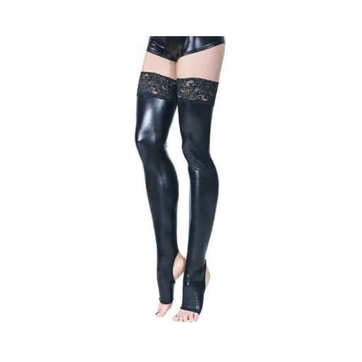 Out of stockToeless wetlook stockings Stay-up silicone grip lace top Black Wetlook/Stretch Lace Size OSQ: Bust 40-50", Waist 32-42", Hip 42-52", Cup C-H, Dres...