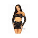 3 Pc Checkerboard Net And Opaque Bandeau, Mini Skirt, And Arm Warmers. Black O/S