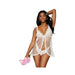 Dreamgirl Lace Mesh Babydoll With Pearl Accents & Lace Pearl G-string White O/s