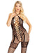 Heart net halter bodystocking with faux lace up front and leg garter detail. O/S Black