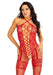 Heart net halter bodystocking with faux lace up front and leg garter detail. O/S Red