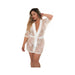 Comfort meets Sexy. Short lace robe with satin collar and belt, comes with matching G-String.