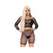2 PC Rhinestone fishnet long sleeve crop top and biker shorts O/S Black