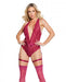 Scallop Stretch Lace Crotchless Teddy W/lace Up Front Raspberry O/s