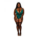 Stretch Lace Teddy and Garter Set Peacock Black Q/S from Dreamgirl Lingerie. Garter Harness adjust with ties in the back. Back features g-string panty style. Harness connects at Neck with a faux collar. Harness goes down the waist to connect thigh high stockings. Color Peacock Green, Black Harness. Materials Lace, Metal. Categories: Lingerie, Clothing, Naughty Role Play, Plus Sizes, One Size Queen, Teddy, Teddies, Stockings, Pantyhose and Garters. Restricted Amazon Restricted. 2023.