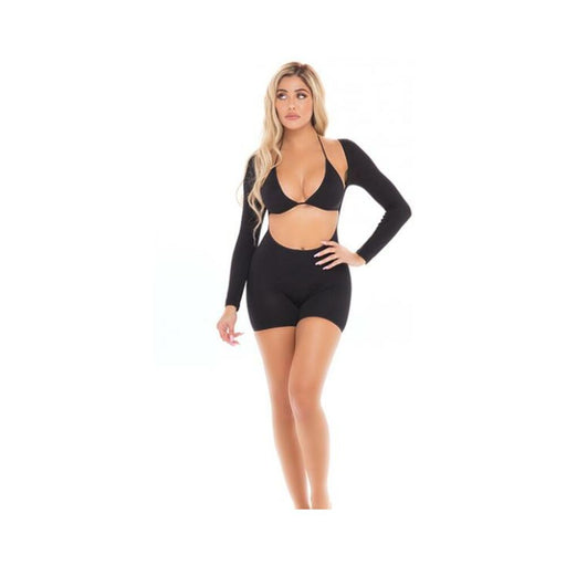 Barely B High Waist Thong/sleeves Os Blk