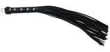 20 inches Black Strap Whip from Spartacus Leathers. Feature 5 metal studs for a sure grip. D-ring on the handle. 20 inches Black Leather Strap Whip hand made by Spartacus Leathers. Weight 1.04 pounds.