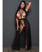 You are the fantasy; this ultra-dreamy dress is simply the icing on the cake. Perfect to throw on or dance off. Skinny straps from the collar deep dive to a thick waist strap, which is veiled by a flowing mesh skirt that opens in front. The attached open panty has adjustable front and side straps.