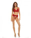 Bombshell Boudoir Lace & Mesh Peek A Boo Wire Bra, Garter Belt & G-string Red Sm
