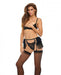 Bombshell Boudoir Lace V Wire Open Cup Bra, Garter Skirt & G-string Black Lg
