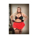 Bralette, Skirt Panty, With Detachable Leg Garter And Pom Pom Wristlets 1x/2x Black And Red