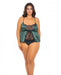 Cammi Eyelash & Satin Cami W/tanga Panty Dark Green/black 3x/4x