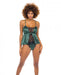 Cammi Eyelash & Satin Cami W/tanga Panty Dark Green/black S/m