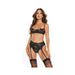 Coquette Lace Detail Bra, Garter & Thong Black L