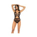 Floral Lace & Mesh Underwire Teddy W/keyhole Details Black Small