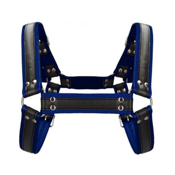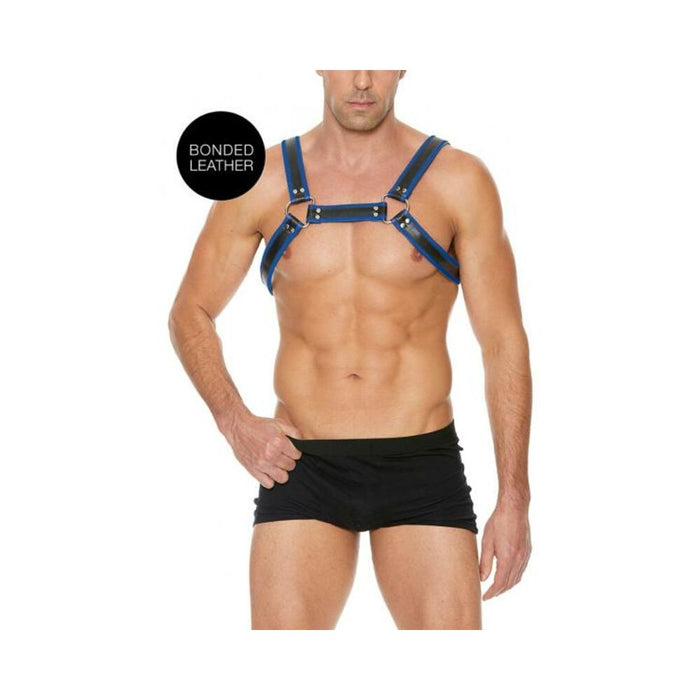 For the dedicated follower of fetish fashion, we have designed this beautifully crafted bonded leather harness. The four adjustable straps with sturdy buckles make the harness a perfect and comfortable fit while giving you a masculine and dominant look. Whilst it makes for a great bondage accessory at home, it also looks great when worn out on the town to clubs, bars or parties! Wear it over your clothes or on naked skin, the choice is yours! For even an even better fit the adjustable Harness comes in 2 sizes: S/M-L/XL. Colour Code: Black - BDSM | Red - Fisting | Blue - Anal
