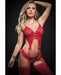 Strappy Frise Crotchless Garter Teddy & Stockings Red O/s